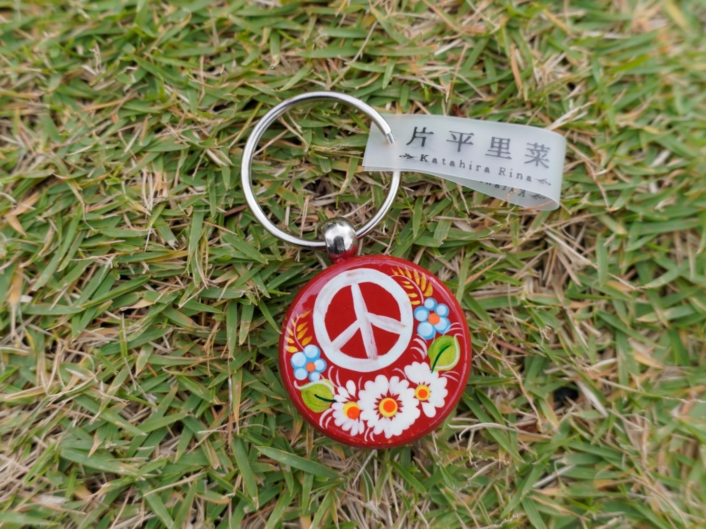 【ウクライナグッズ】ペトリキウカ塗りキーホルダー PEACE【赤】