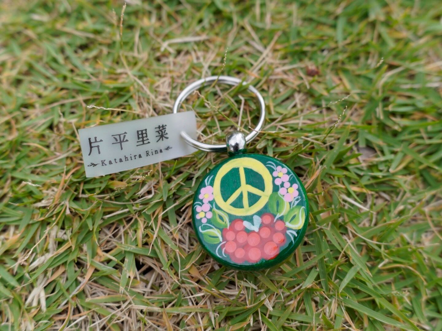 【ウクライナグッズ】ペトリキウカ塗りキーホルダー PEACE【緑】