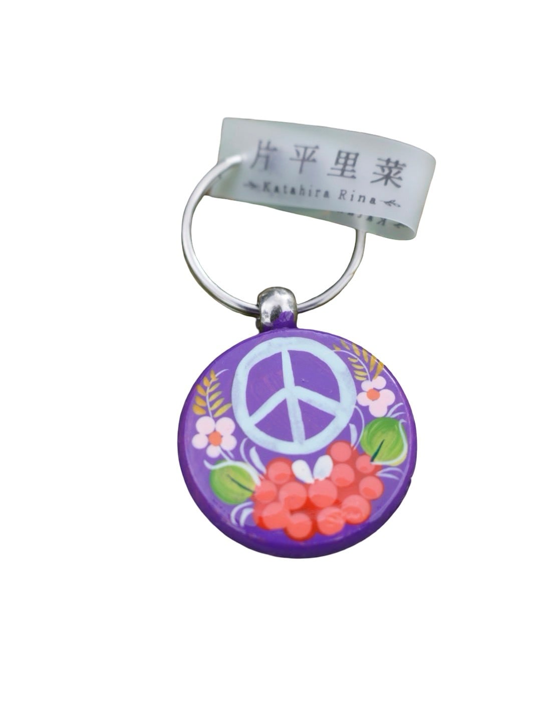 【ウクライナグッズ】ペトリキウカ塗りキーホルダー PEACE【紫】